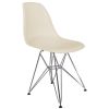 Ajout récent à notre collection de mobilier moderne, voici une reprise des réalisations de Charles Eames : la chaise DSR en ABS, une création remarquable de l’équipe que composait Charles Eames et son épouse Bernice. Nous l’avons produite en hommage à ce couple ô combien talentueux. La coquille en ABS finition mate, est portée sur ses jambes « Eiffel » en acier inoxydable. Disponibles en plusieurs couleurs chaudes, leur style convient à toutes les ambiances, un intérieur contemporain, un bureau ou un restaurant. En effet leur conception solide accepte toutes les agressions d’un usage quotidien en milieu professionnel préservant ainsi leur design épuré, leur élégance et leur confort. Elles sont bien sûr garanties.